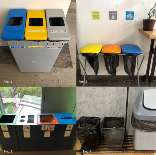 На фото 1 – бак для раздельного сбора мусора в Любляне, столице Словении. Надо решить, в какой бак выбросить бумажный пакет, а в какой – шкурку от банана. С пакетом все понятно, «папир» это самоочевидно. А желтую шкурку интуитивно хочется опустить в желтый бак. Но если задуматься и ориентироваться по надписи? Неясно, «эмболажа» это или «отпадки». Фото 2 – бак с другого этажа того же университета. По картинкам пользователю становится понятно, что «эмболажа» означает «упаковка», т.е. банановую кожуру не сюда. Фото 3 – бак в университете Амстердама. Насколько им легче пользоваться! И вероятность ошибок – снижается. Для контраста – шедевр из одного конференц-зала в Москва-Сити (фото 4); это пример очень плохого помощника для принятия решения – здесь будет много ошибок.</з>